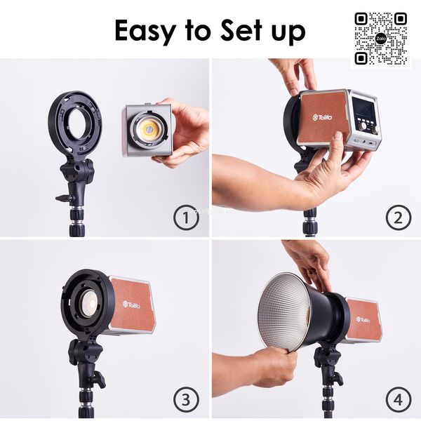 Tương thích linh hoạt: Cho phép sử dụng các phụ kiện ngàm Bowens tiêu chuẩn với đèn TOLIFO ngàm Mini S.
