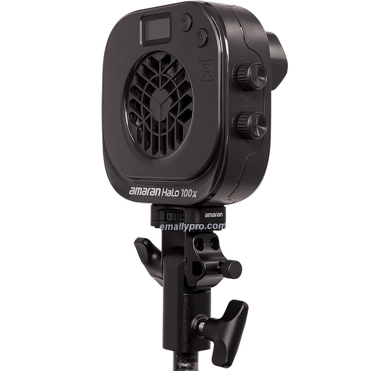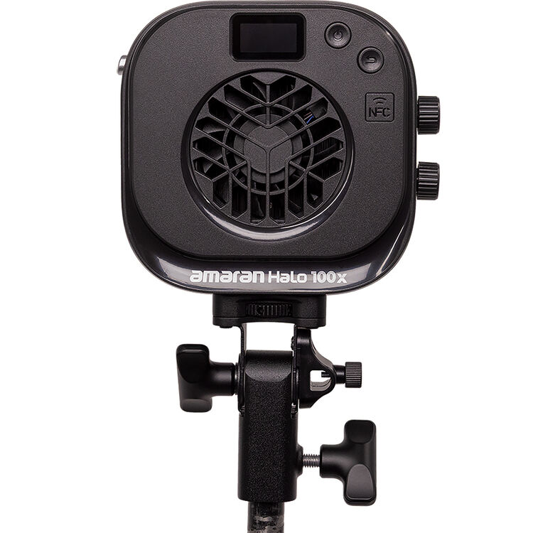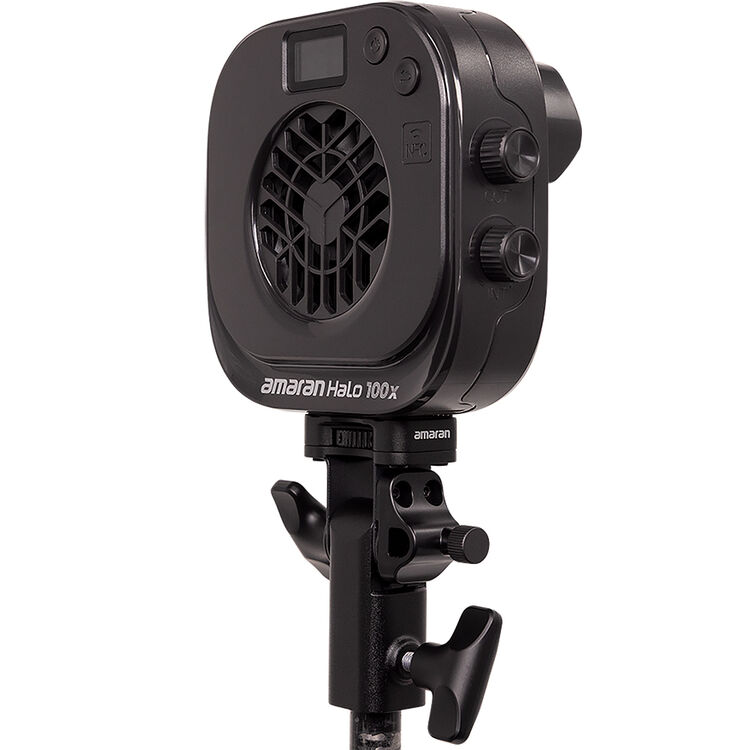Mặt trước của thiết bị là ngàm Bowens kích thước đầy đủ được gia cố, tương thích với gương phản xạ mini tùy chọn, gương Fresnel mini và nhiều loại phụ kiện ngàm Bowens khác. Amaran cũng bao gồm bộ chuyển đổi 1/4"-20 sang baby pin với giá đỡ nghiêng tích hợp và giá đỡ dù, do đó bạn có khả năng tương thích tuyệt vời với dù và chân đế tùy chọn. Giống như Halo 60x, Amaran giữ cho mẫu 100x siêu nhỏ gọn ở kích thước 5,2 x 4,7 x 2,2" nhưng vẫn có khả năng tương thích rộng rãi nhờ tính linh hoạt của ngàm Bowens đầy đủ.