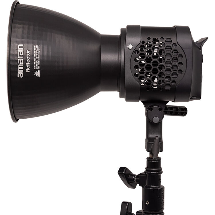 Trên bề mặt của thiết bị là ngàm Bowens bằng kim loại kích thước đầy đủ, được gia cố chắc chắn, tương thích với các phụ kiện tùy chọn như gương phản xạ, thấu kính Fresnel, Spotlight SE và các phụ kiện khác. Tại đây, giá đỡ nghiêng tích hợp với tay cầm giúp dễ dàng thao tác, điều chỉnh góc nhanh chóng và gắn nhanh vào các chân đế được bán riêng. Amaran giữ cho mẫu 200x nhỏ gọn ở kích thước 7 x 5,5 x 6,5" (bao gồm cả giá đỡ) nhưng vẫn đảm bảo khả năng tương thích rộng rãi nhờ tính linh hoạt của ngàm Bowens.