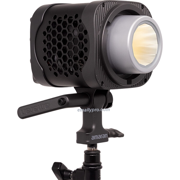 Trên bề mặt của thiết bị là ngàm Bowens bằng kim loại kích thước đầy đủ, được gia cố chắc chắn, tương thích với các phụ kiện tùy chọn như gương phản xạ, thấu kính Fresnel, Spotlight SE và các phụ kiện khác. Tại đây, giá đỡ nghiêng tích hợp với tay cầm giúp dễ dàng thao tác, điều chỉnh góc nhanh chóng và gắn nhanh vào các chân đế được bán riêng. Amaran giữ cho mẫu 300x nhỏ gọn ở kích thước 8,6 x 5,5 x 6,5" (bao gồm cả giá đỡ) nhưng vẫn đảm bảo khả năng tương thích rộng rãi nhờ tính linh hoạt của ngàm Bowens.