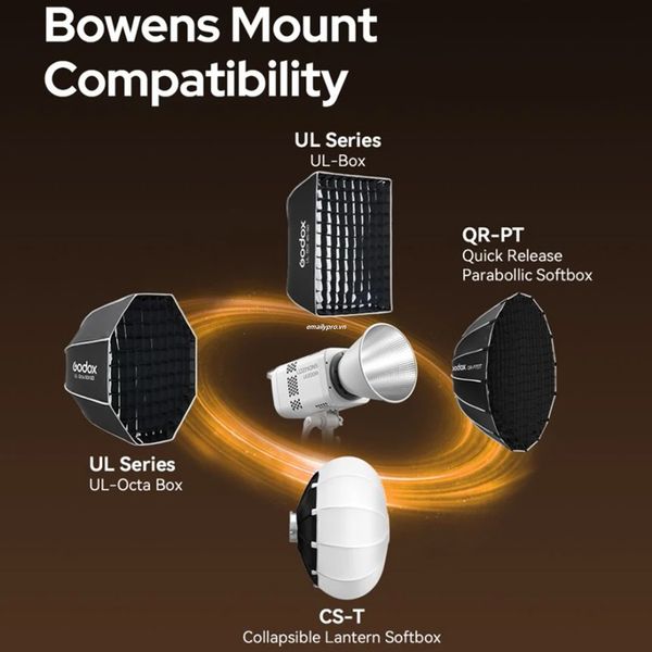 Được cấu hình để tương thích với ngàm Bowens tiêu chuẩn và các phụ kiện, chẳng hạn như chóa phản quang đi kèm, LE300Bi hoàn toàn tương thích với dòng softbox UL có sẵn riêng của Godox với nhiều hình dạng khác nhau, cũng như softbox parabol tháo lắp nhanh QR-PT và softbox đèn lồng CS-T có thể thu gọn. Sử dụng các bộ điều chỉnh khác nhau để khuếch tán, thu hẹp và tạo hình ánh sáng tốt hơn cho hầu hết mọi ứng dụng. Litemons LE300Bi được thiết kế để phù hợp với mọi thiết lập phát trực tiếp đến các studio thương mại lớn hơn. Cuối cùng, cổng USB-A cũng có sẵn để cập nhật firmware.