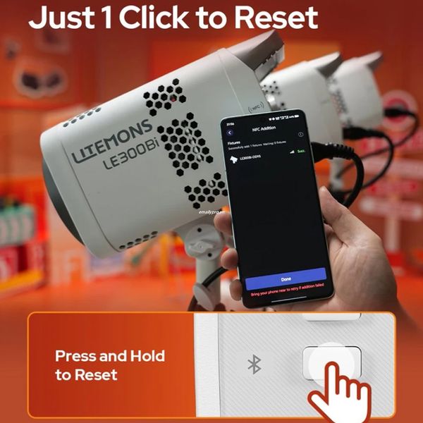 LE600Bi cung cấp nhiều cách để tùy chỉnh quy trình làm việc chiếu sáng của bạn. Điều chỉnh cài đặt trực tiếp từ giao diện tích hợp, tích hợp đèn vào các thiết lập chuyên nghiệp với điều khiển DMX, hoặc tinh chỉnh từ xa thông qua ứng dụng Godox Light chuyên dụng. Với kết nối NFC một chạm, việc thiết lập trở nên nhanh chóng và đơn giản, cùng với tùy chọn tích hợp không dây CRMX mở rộng khả năng của bạn trên các sản phẩm quy mô lớn hơn. Nút reset Bluetooth chuyên dụng giúp quản lý kết nối dễ dàng.