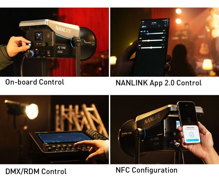 Đèn chiếu sáng đa năng này tích hợp cả kết nối không dây Bluetooth và 2.4 GHz, cũng như khả năng DMX/RDM và các chế độ quạt thông minh, cho phép kiểm soát hoàn toàn âm thanh. Ngàm phụ kiện Bowens cho phép gắn nhiều loại phụ kiện khác nhau vào đèn. Đầu đèn của FC720B được tách rời khỏi bộ nguồn đi kèm, giúp mỗi bộ phận có trọng lượng nhẹ nhất có thể. Một chóa phản xạ và một hộp đựng chắc chắn cũng được cung cấp để tăng khả năng chiếu sáng và tính di động.