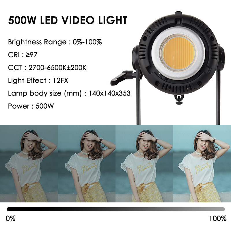 Công suất: 500W – cung cấp ánh sáng mạnh mẽ, ổn định