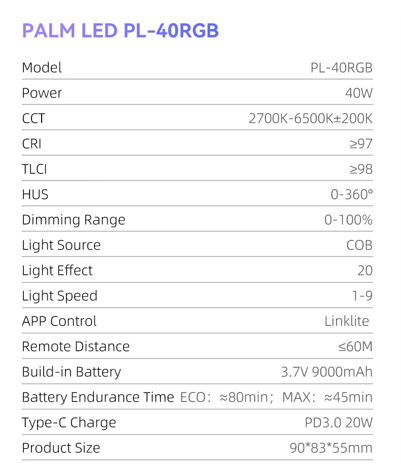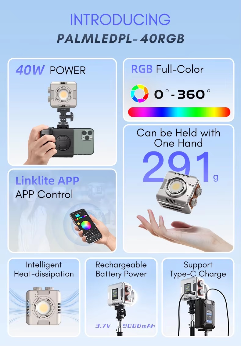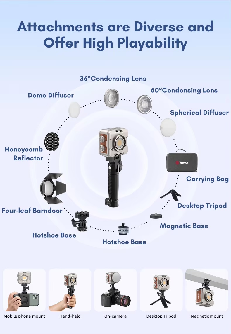 Cho dù bạn đang quay nội dung trong studio, tại địa điểm khác hay trên máy tính để bàn, Tolifo PL-40RGB đều mang đến cho bạn sức mạnh và độ chính xác để hiện thực hóa ý tưởng của bạn—mọi lúc, mọi nơi.
