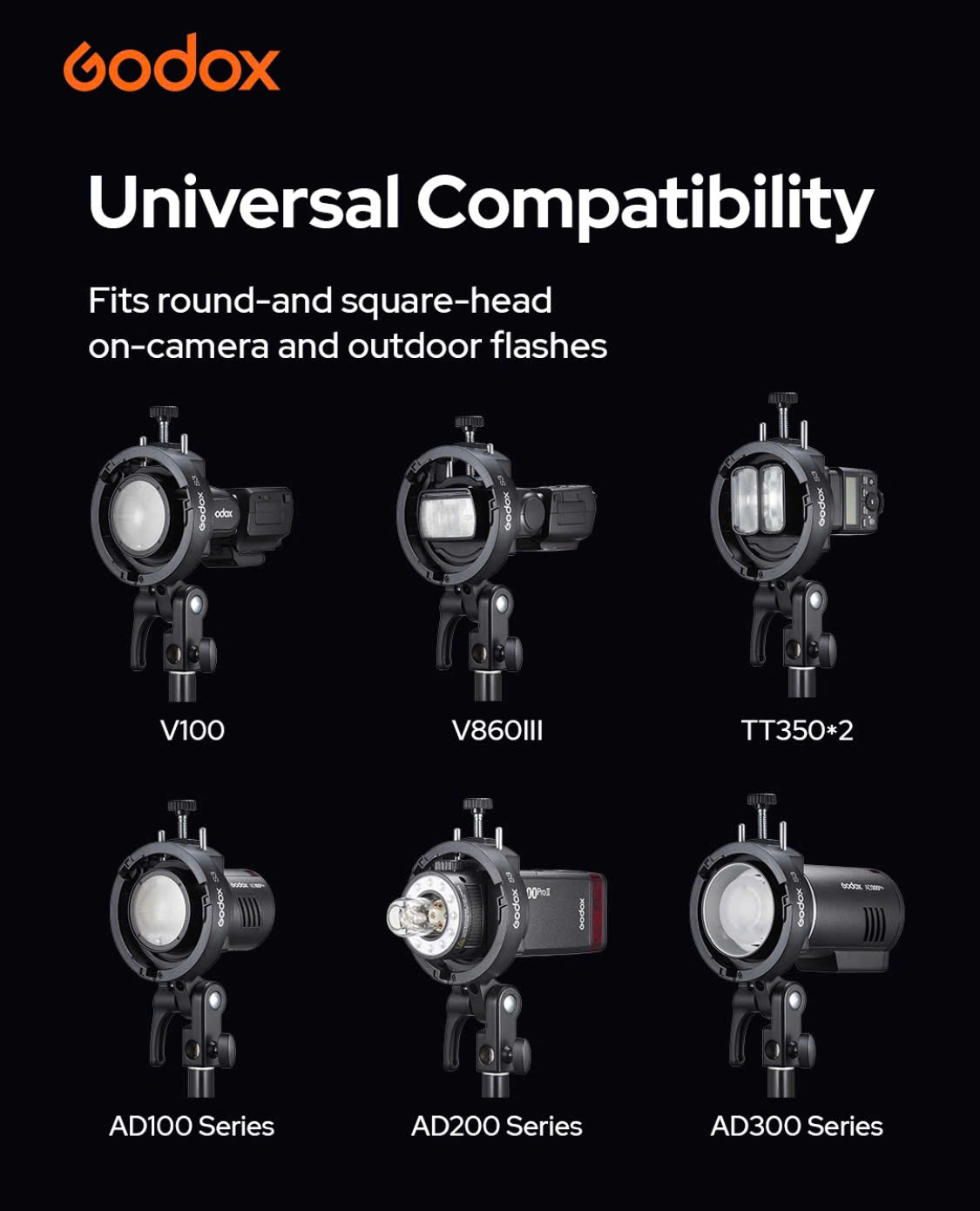Giải pháp hoàn hảo cho các dòng flash Godox V100, V860III, AD100, AD200Pro, AD300Pro và Speedlite.