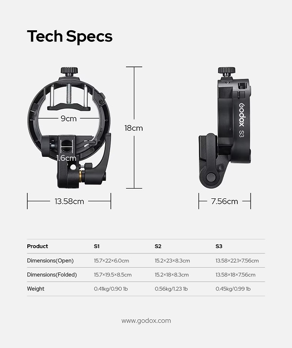 GIÁ ĐỠ ĐÈN FLASH GODOX S3 – BOWENS MOUNT LOẠI S