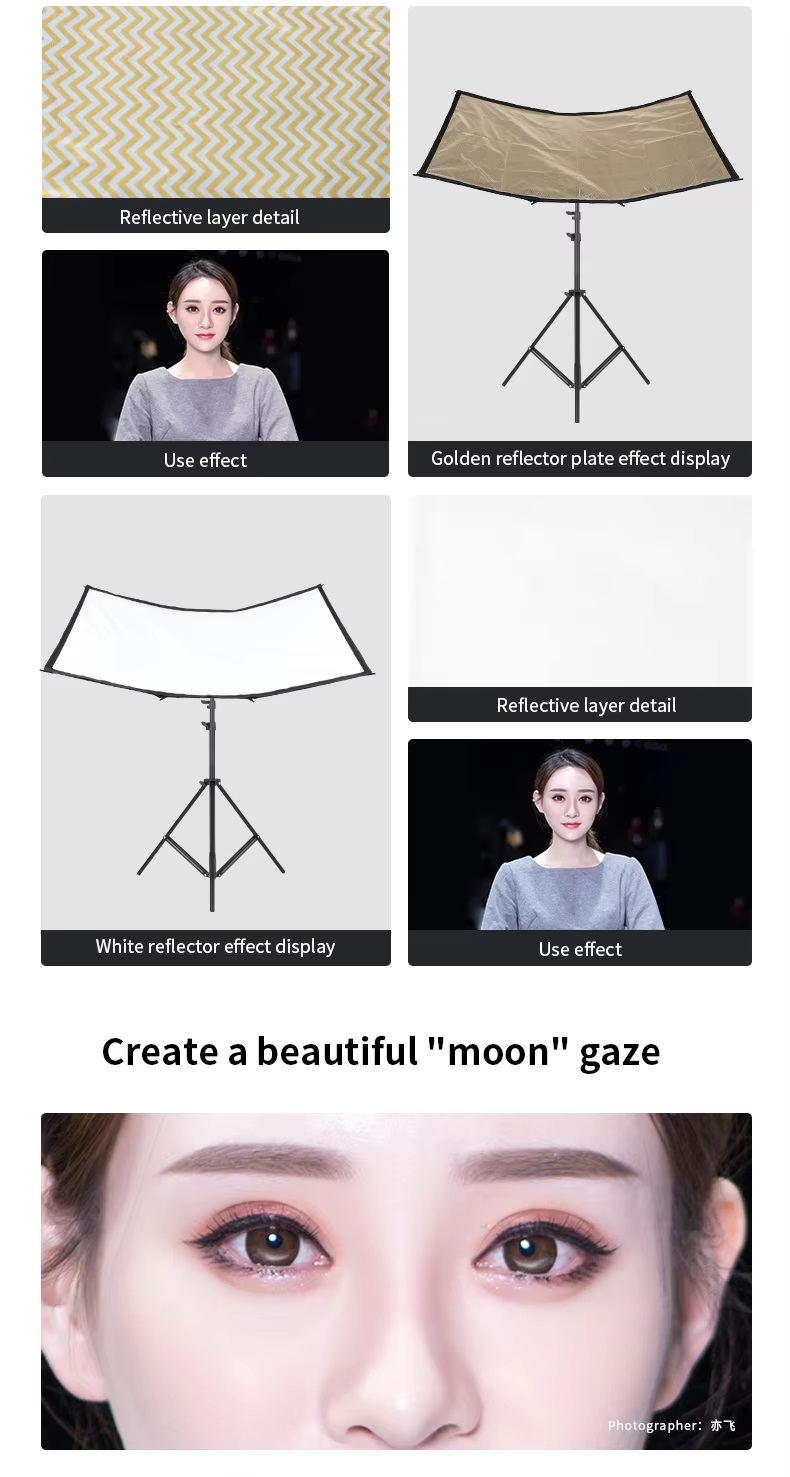 Với khả năng tạo ánh sáng bắt mắt hình vòm, hắt sáng cong 4in1 giúp bức chân dung trở nên hấp dẫn và thu hút hơn. Bạn có thể dễ dàng điều chỉnh ánh sáng để làm mịn da, tạo khối và làm nổi bật đường nét trên khuôn mặt.