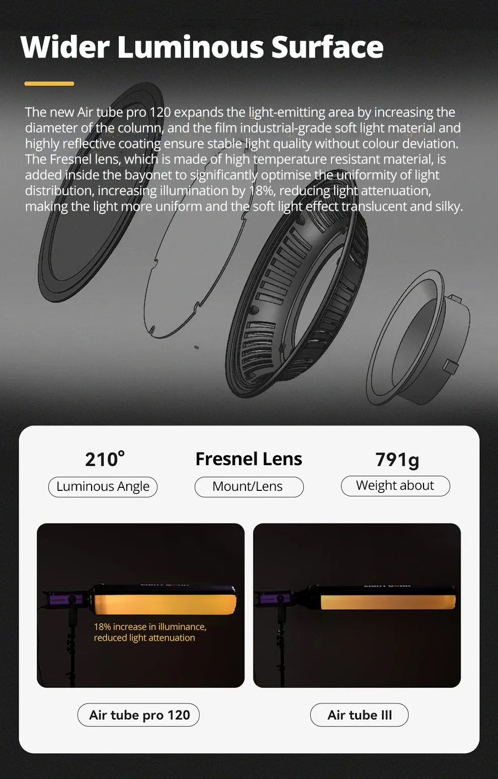 Softbox Air Tube Pro 120 với thấu kính Fresnel