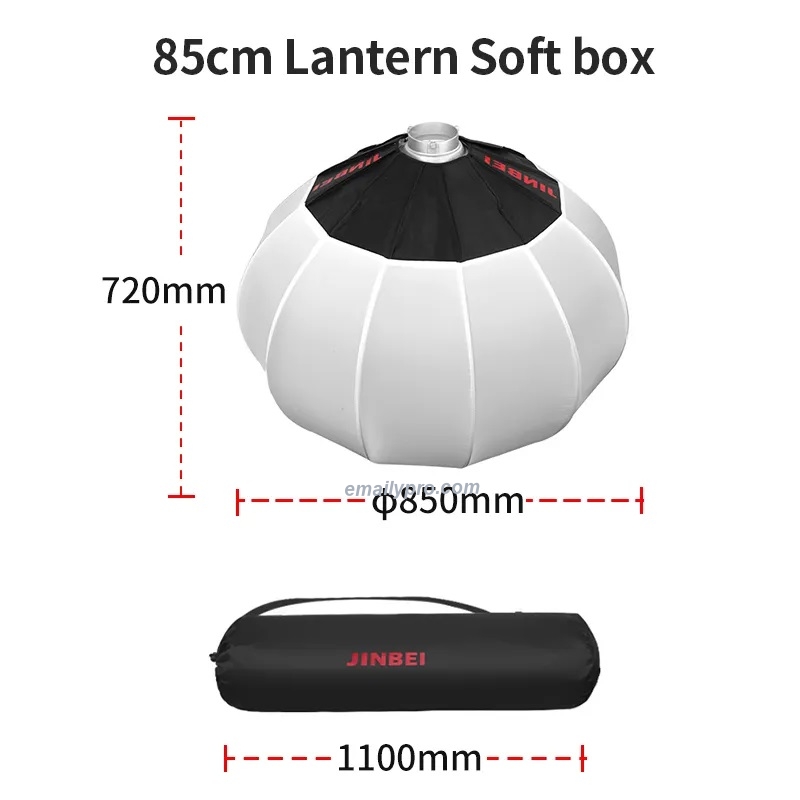 Áp dụng cho vừa và nhỏ-Có kích thước phòng chiếu đa hướng chiếu sáng Softbox Ball JINBEI 85CM được làm bằng hợp kim nhôm, khung gắn được làm bằng thép không gỉ. Softbox có dạng hình cầu cho ánh sáng chiếu xung quanh hướng 360°, ngoài ra có thêm một lớp vải trắng bọc xung quanh để làm giảm lượng ánh sáng ra và làm cho toàn bộ ánh sáng đều và tự nhiên, giúp phân tán ánh sáng tốt hơn.