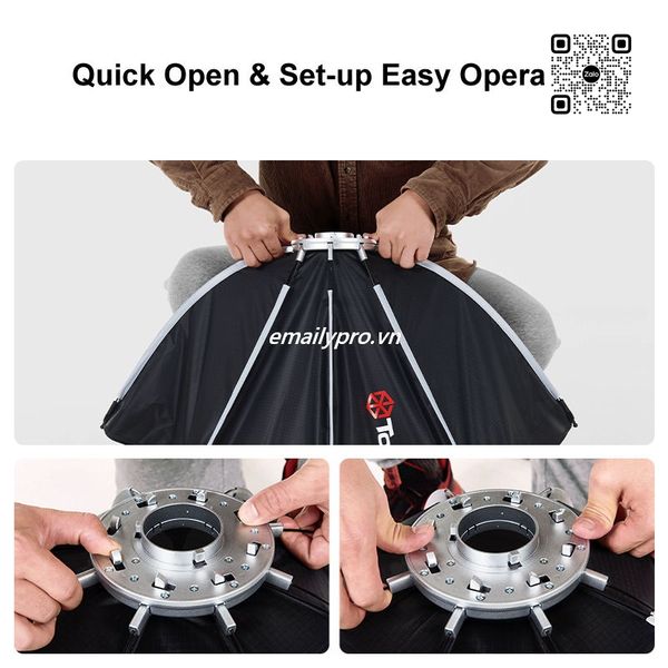 Softbox bát giác mini Bowens 60CM & 80CM TOLIFO là lựa chọn lý tưởng cho nhiếp ảnh gia và nhà quay phim cần ánh sáng chất lượng, ổn định và linh hoạt.