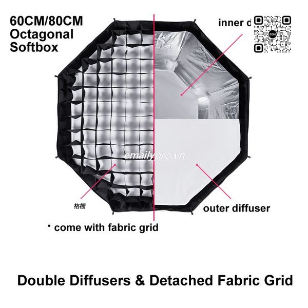 Kích thước đa dạng (60CM & 80CM): Phù hợp cho nhiều nhu cầu chụp ảnh và quay phim, từ không gian nhỏ gọn đến setup chuyên nghiệp.