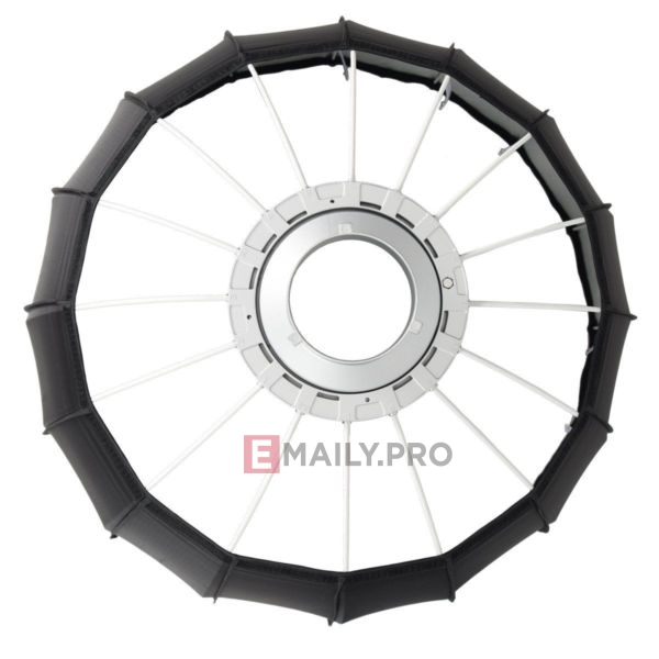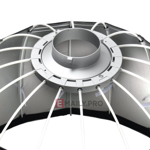 Cấu trúc của Parabolic Softbox được củng cố bởi 16 thanh hỗ trợ bằng sợi thủy tinh và kim loại bền bỉ, trong khi đó vách ngăn màu bạc giúp tối đa hóa lượng ánh sáng, cung cấp nhiều tùy chọn để khuếch tán nguồn sáng của bạn, cho phép bạn có nhiều sự lựa chọn sáng tạo hơn.