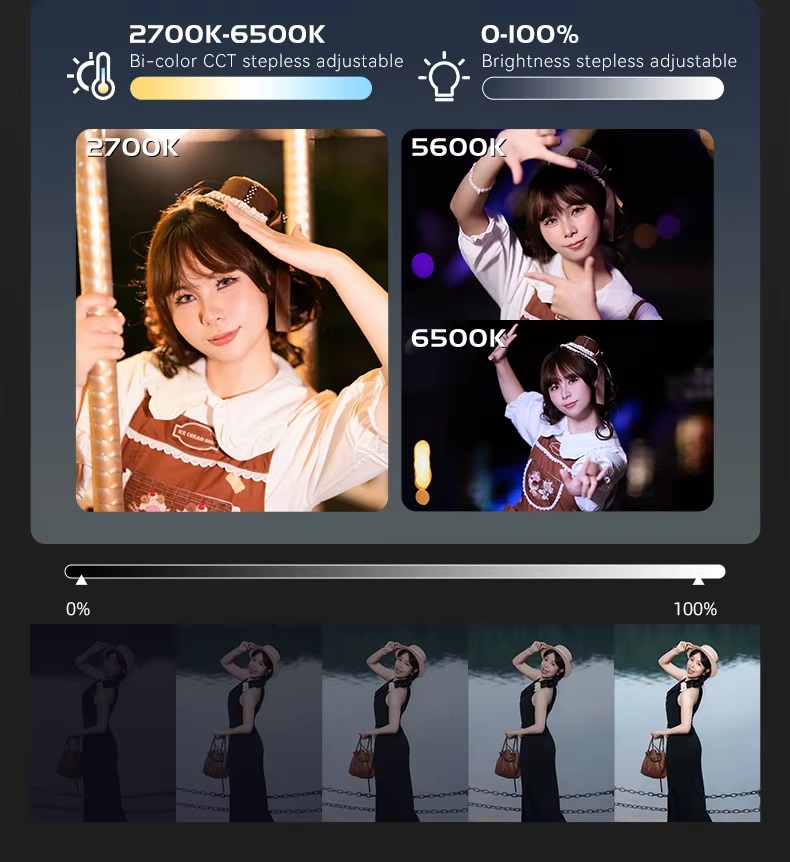 Dải nhiệt độ màu linh hoạt: Từ 3200K – 5600K, đáp ứng nhu cầu quay trong nhiều điều kiện ánh sáng khác nhau.