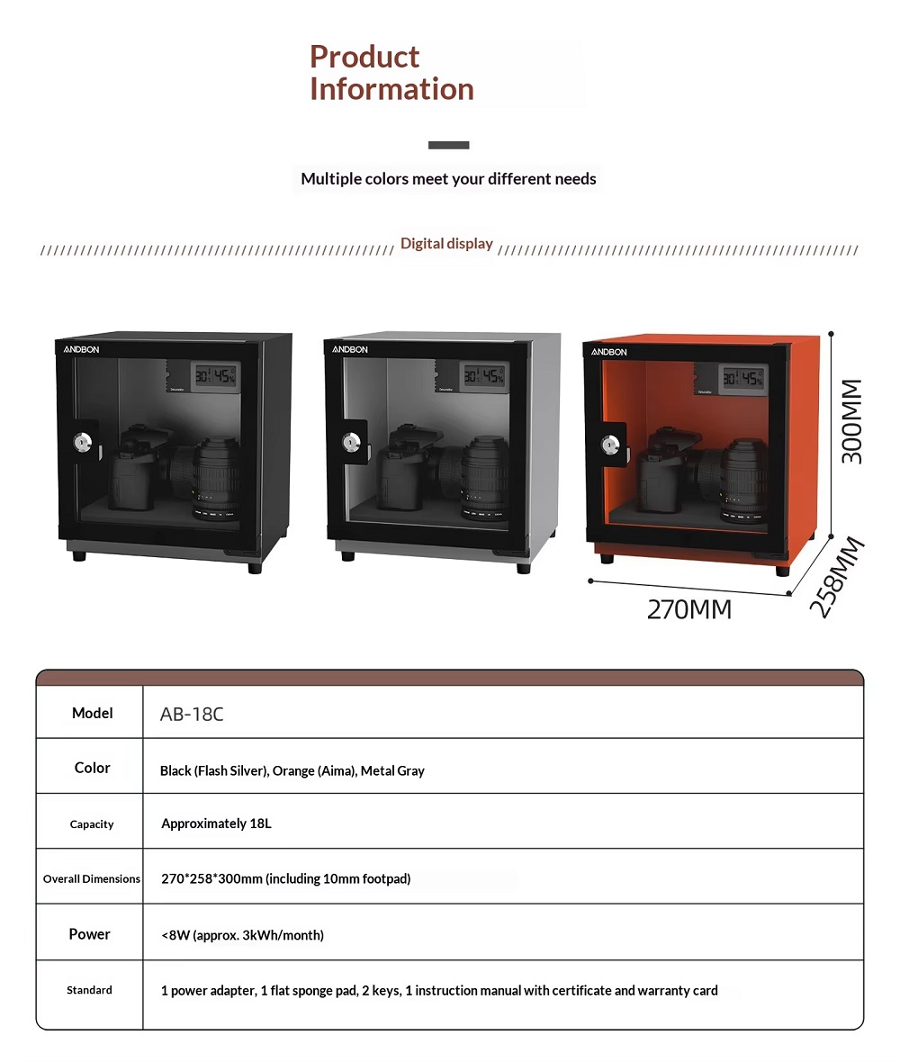 Tủ sấy máy ảnh ANDBON AB-18C là dòng sản phẩm chuyên nghiệp, được thiết kế dành riêng cho việc bảo quản máy ảnh, ống kính và các thiết bị quang học – điện tử nhạy cảm với độ ẩm. Với dung tích 18 lít, sản phẩm phù hợp cho nhu cầu cá nhân, studio nhỏ hoặc những người chơi máy ảnh muốn bảo vệ thiết bị một cách tối ưu.