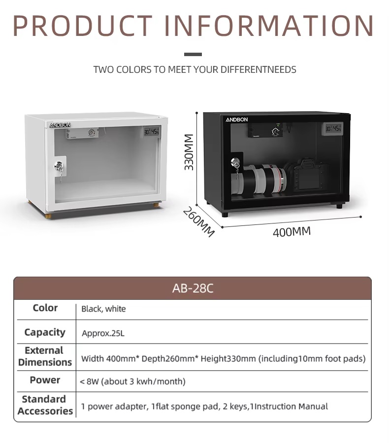 Tủ hút ẩm ANDBON AB-25C là giải pháp tối ưu dành cho những ai sở hữu máy ảnh, ống kính và các thiết bị điện tử cần được bảo quản trong môi trường khô ráo, an toàn.